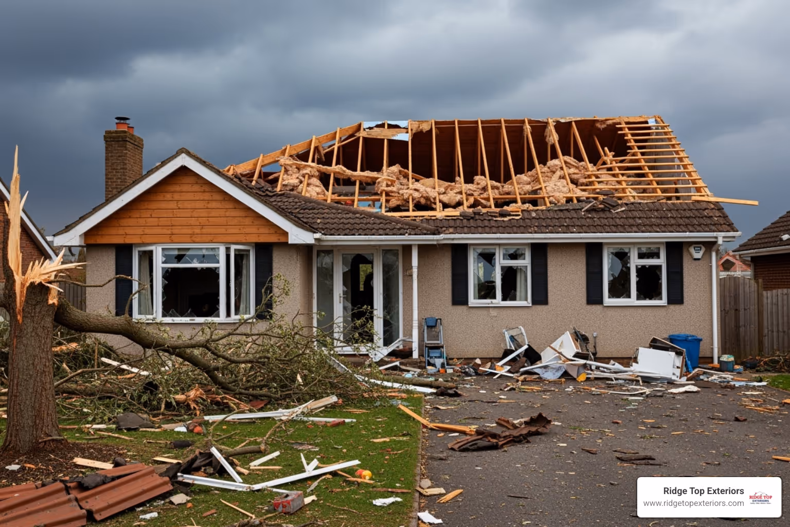 A thorough inspection from Ridge Top Exteriors ensures your residential storm damage repair addresses every issue, protecting your home's long-term value and safety.